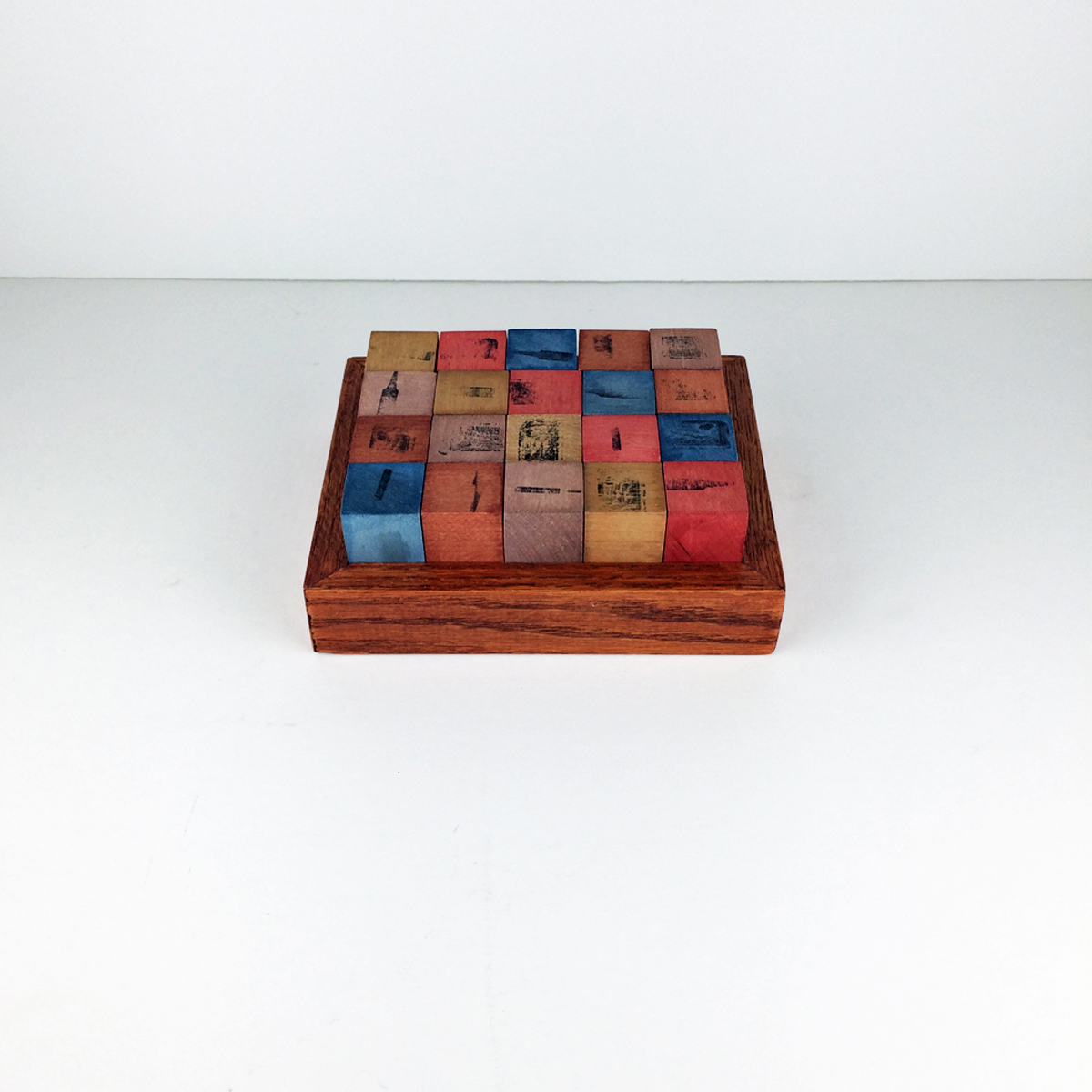 Mixed Media, Board: 5” x 6” x 1 3/16”; Game pieces: 20 @ 1” cubes